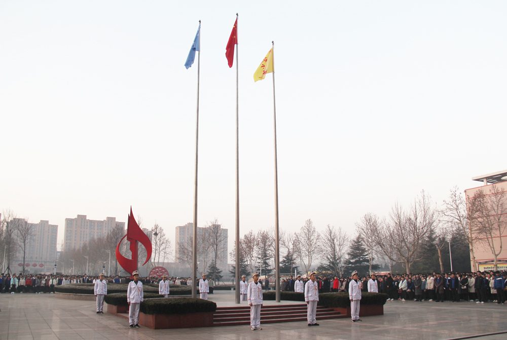随着嘹亮的国歌声激昂响起,鲜艳的五星红旗伴着朝霞,沐浴着晨风,冉冉升起。国旗升毕,校长、党委书记黄本东与全体同学一起重温了诸葛亮的《诫子书》,详细解读了《诫子书》86字所蕴含的深刻道理,希望寿光中学的学子们要牢记这短短的86字,立足当下,立德修身做学问,成为具有大智慧、大成就的人。