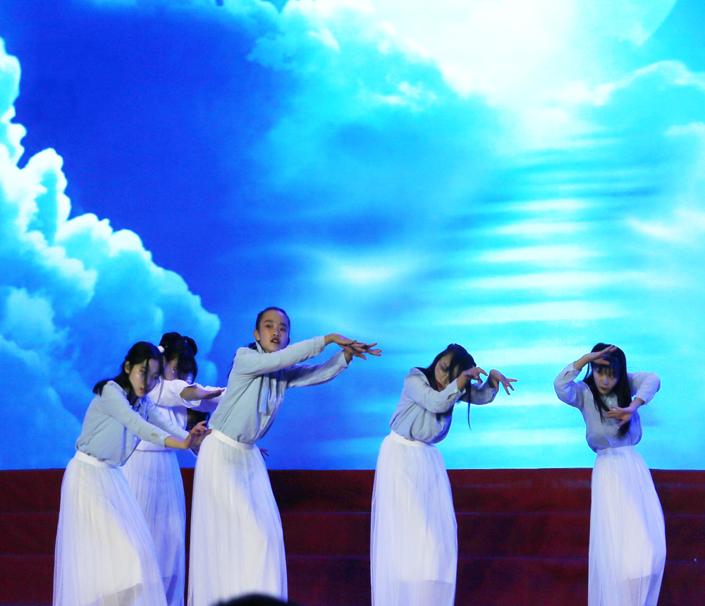 台上灯光闪烁,色彩迷离,台下一片沸腾,掌声、欢呼声汇成了欢乐的海洋。整场演出,寿光中学师生用自己的方式,展现了青春蓬勃、昂扬向上的姿态,彰显了校园的生机与活力、热情与魅力。在演出活动中陶冶学生爱国主义情操,培养了学生热爱生命、热爱家国的情怀。