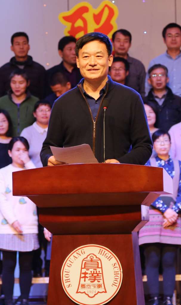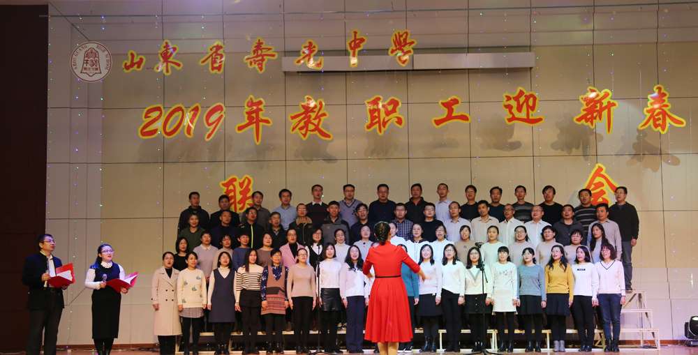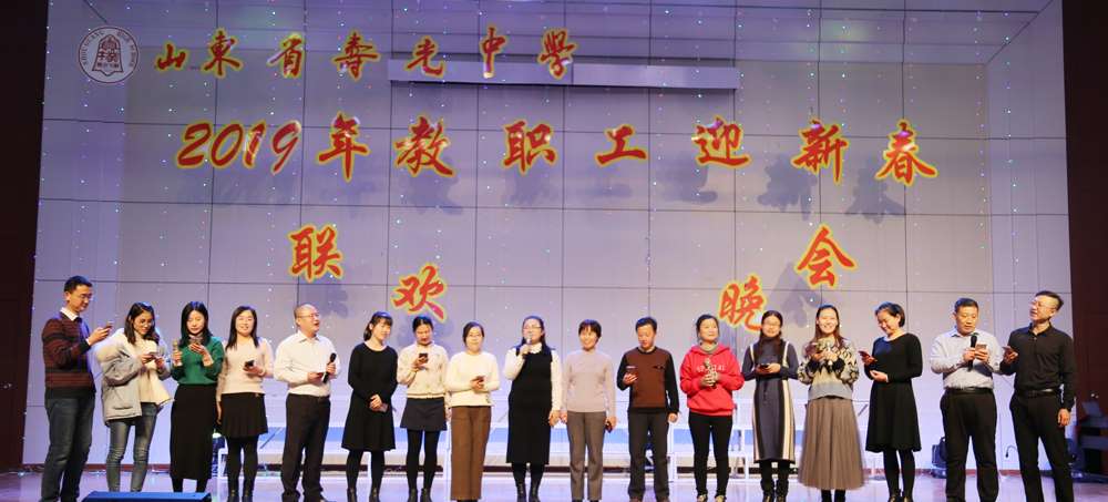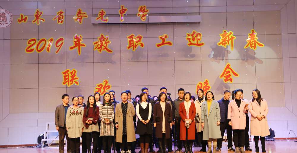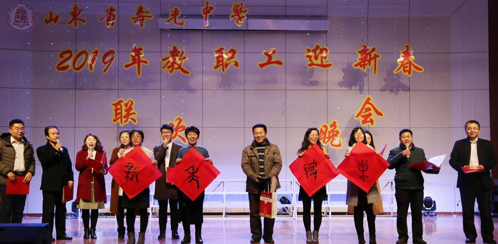 晚会在高三级部的大合唱《走进新时代》中拉开序幕,也奏响了辞旧迎新的动人乐章;政治组合唱《歌唱祖国》、化学组和地理组的说唱的《大中国》,歌颂了祖国蓬勃发展,表达了老师们对祖国的热爱;物理组的创意舞蹈《火柴人舞蹈》,用新颖的舞蹈方式,为大家送上了新年吉祥如意的美好祝福;英语组的合唱《You Are My Sunshine》、历史组的《朋友》,都唱出了老师们对寿光中学大家庭的热爱;数学组的《甘心情愿+你干嘛》,以活泼欢快的形式,跳出了喜庆的节奏;《萌娃闹春》,教职工子女也用他们擅长的方式送上了新春的祝福;高一级部歌舞《欢欢喜喜拜新年》,体育组的《少年壮志不言愁》、艺术组《家乡的天路》和生物组《栀子花开》,一首首经典旋律让老师们意犹未尽;语文组朗诵《青春万岁》以及现场书写篆体的新年快乐,让观众们体会中华民族语言文字的独特魅力;高二音乐班同学的《好大一棵树》,代表学生表达了对老师们的新年祝福;高二级部的《Music年代秀》以耳熟能详的歌曲串烧,表象了四个年代不同的时代特征。最后,晚会在学校鲲鹏合唱团的大合唱《让世界充满爱》中愉快落幕。