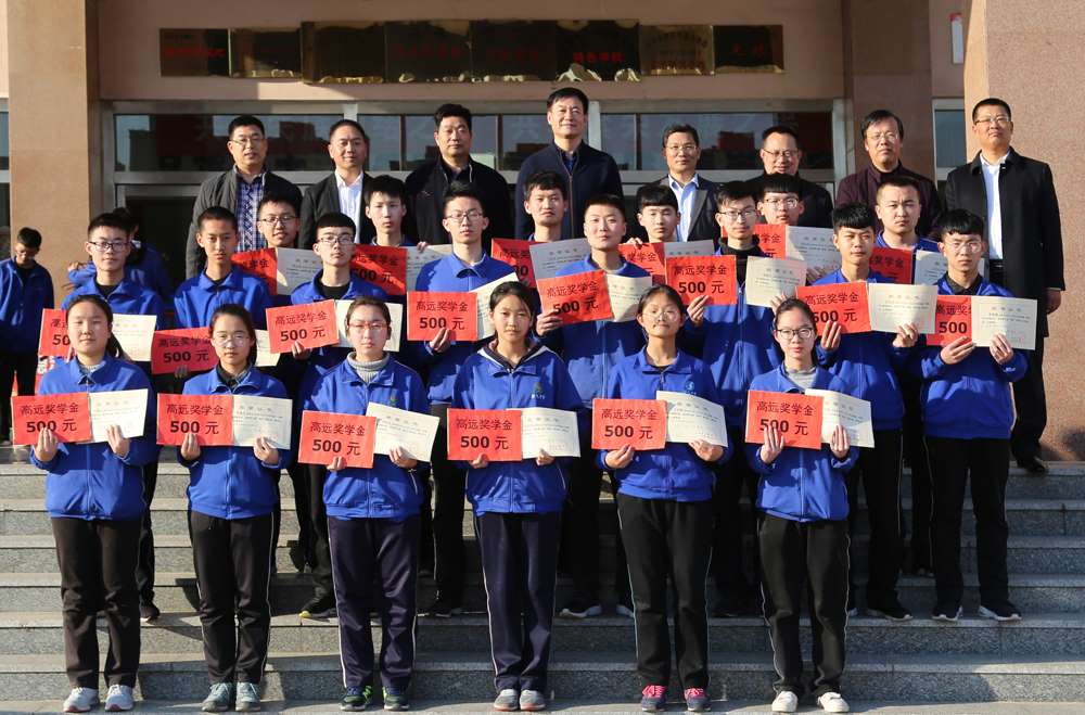 寿光中学“高远”奖学金是我校87级校友董黎明先生及夫人吴春慧女士出资设立的,为了激励寿光中学学子志存高远,刻苦学习,自觉养成良好的学习习惯,争创一流成绩,奖励学习成绩特别优秀的同学。根据上学期同学们的学业成绩,有20名同学荣获寿光中学第九届“高远奖”学金。董黎明先生在证书上书写赠言“志存高远,学不畏难,完美生命”,对同学们进行鼓励。