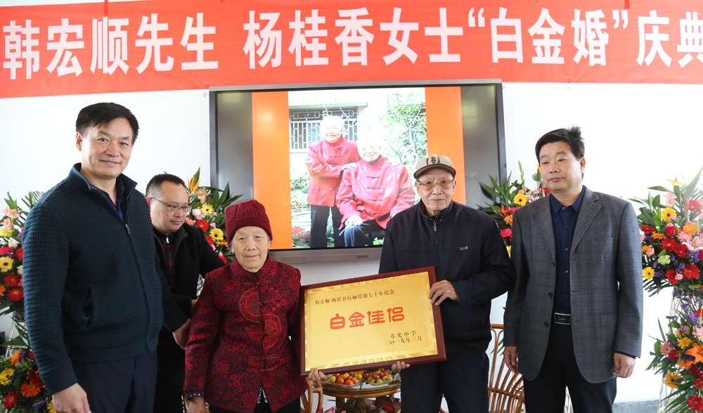 “家和万事兴”“父慈子孝,兄友弟恭”,是我国传统家庭文化的精华所在,是我们需要大力弘扬的伦理道德观。韩宏顺老师1949年与杨桂香女士结婚,生养五个儿女,至今身体康健,家庭和谐,生活美满幸福,人人称羡,堪称所有家庭的学习榜样。学校工会积极组织筹备为其庆贺,这既是学校多年来关心退休职工生活的举措,更是学校一直倡导建设和谐家庭,弘扬传统文化,创建大美幸福校园的要义所在。