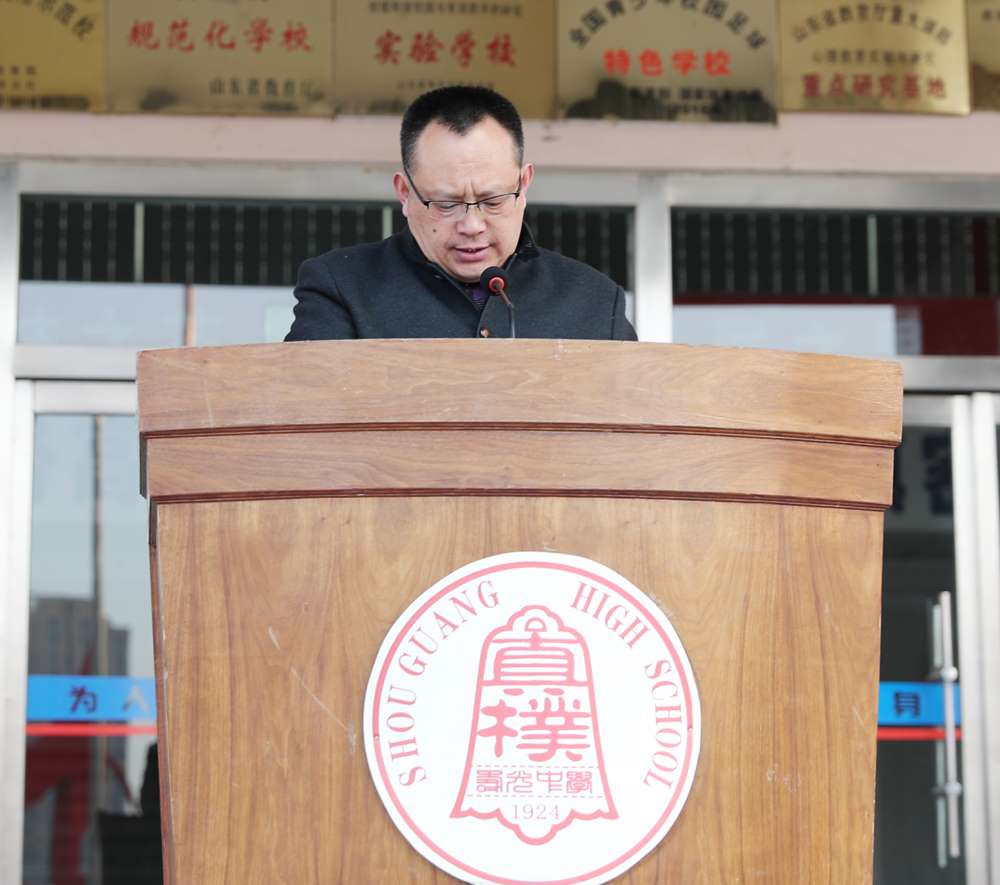 首先李福学副校长做了题为《读书——梦想腾飞的翅膀》的致辞:读书学习,可以开阔自己的视野,可以推动学校的发展,可以为报效祖国实现中国梦而孜孜求索。“天下兴亡,匹夫有责”,我们要用自己读书学习的实际行动换取新世纪的辉煌!师生共读,培植校园文化,建设书香校园,提升校园文化品位,是学校发展的康庄大道,是促进寿光中学特色发展的必由之路。树立终身读书学习理念,为我们的梦想插上腾飞的翅膀。阅读可以改变人生的宽度和厚度,通过阅读,我们视通四海,思接千古,与智者交谈,与伟人对话,打造人生的底色。