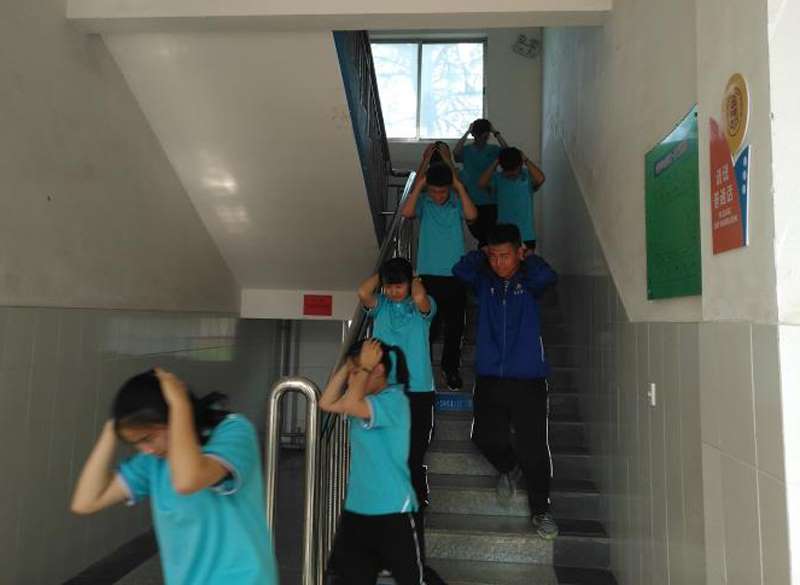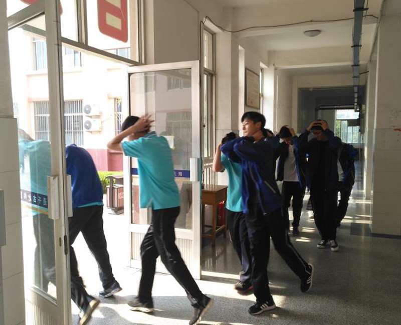 5月12号下午3:50,寿光中学全体师生开展了5.12防震疏散演练。伴随着凄厉的防震警报,同学们安全迅速的躲到了课桌下面,12秒过后第二次警报响起,同学们迅速从课桌下起身,迅速有序的从教学楼撤离到办公楼前的广场集合。