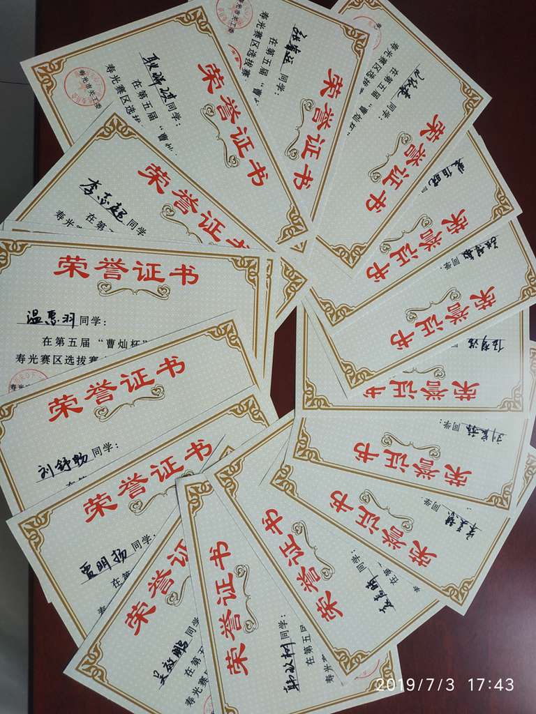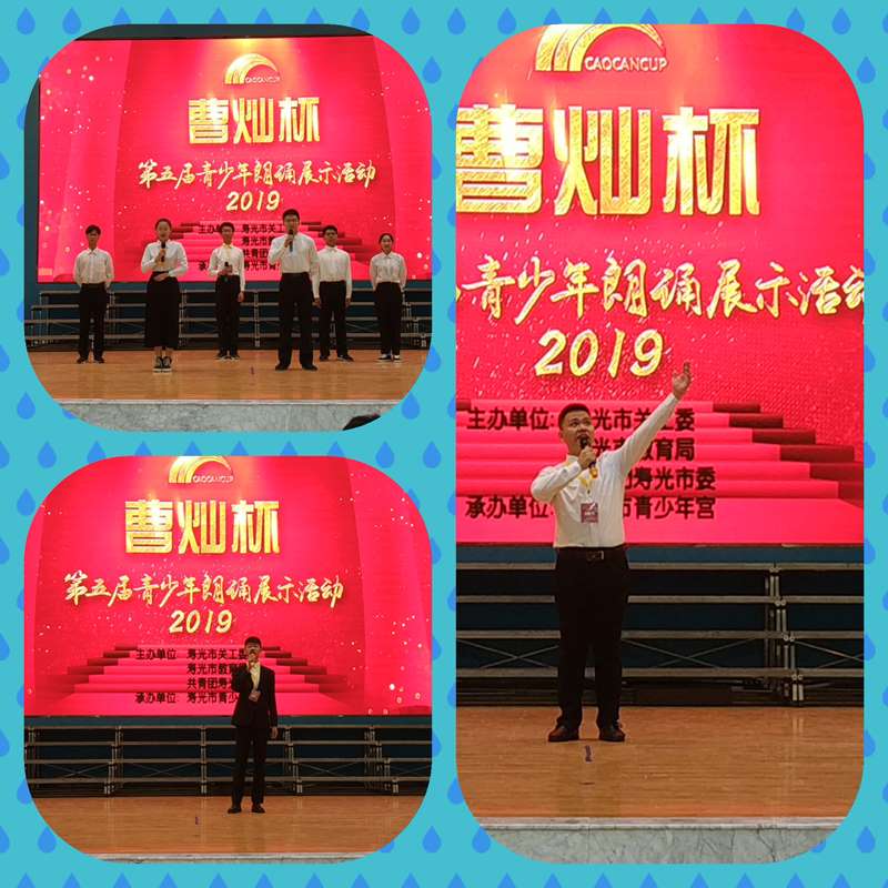 近日,由共青团寿光市委、寿光市关工委、寿光市教育局联合举办,由寿光青少年宫承办的第五届“曹灿杯”青少年朗诵大赛圆满落下帷幕。我校学生在此次比赛中充分展现寿光中学的学子风采,并取得优异成绩。2017级16班杜俊豪、温惠羽、耿瑞琪、王依泰、李志超、李玉腾、张睿廷的集体朗诵《黄河颂》;2017级23班贾明扬的《将进酒》;2017级9班吴效鹏的《再别康桥》荣获寿光赛区高中组一等奖,晋级省赛。并分别荣获金、银、铜奖。2018级2班韩玖树,2017级1班袁彦晴,2017级13班宋美慧、刘宸赫、伍梦浩、张慧敏分获寿光赛区高中组二、三等奖。王乐彬、孙树芝、刘小方三位老师“荣获优秀指导教师奖”。