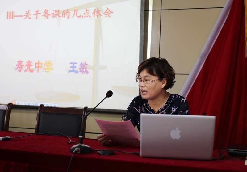 政治学科带头人王敏老师结合多年来的经验从心中有书、目中有人、手中有法即备知识、备学生、备教法三个方面谈了关于如何备好课的几点体会,强调了认真备课的重要性,以及如何做好教学反思并结合自己的认识和教学中的实例进行了说明,给新老师们提供了非常好的经验和做法。