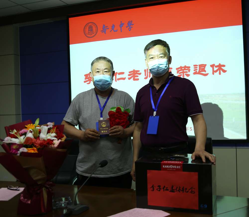 李子仁老师深情回顾了自己在寿光中学工作生活的幸福时光,表达了自己对学校及同事们的感激和眷恋之情,希望自己退休后能继续为学校的发展建设发挥余热。家人代表李子潭也表达了对老大哥李子仁老师的敬佩之情和对学校的感激之情。