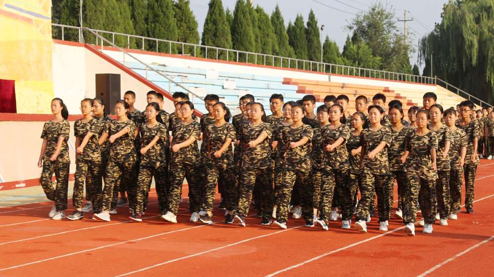 新生军训是寿光中学全面育人的重要内容,为期8天的训练,既有考验耐力和意志力的队列训练,也有作为特色育人活动的拓展训练;既有生动形象的校史文化知识培训,也有重点突出的国防教育讲座,为学生们今后增强身体素质、磨练坚强意志、锻炼思想品格、激发爱国热情、提升国防意识打下坚实的基础。几天军训过后,高一新生依稀显露出“小军人”的风采,一排排坚挺的背影彰显出新生的风采,一双双坚毅的眼神映射着少年们的激情,一声声嘹亮的口号呐喊出青春的热血,挺拔的身姿伴随一张张稚嫩却刚毅的面孔,构成了操场上最美的风景线。