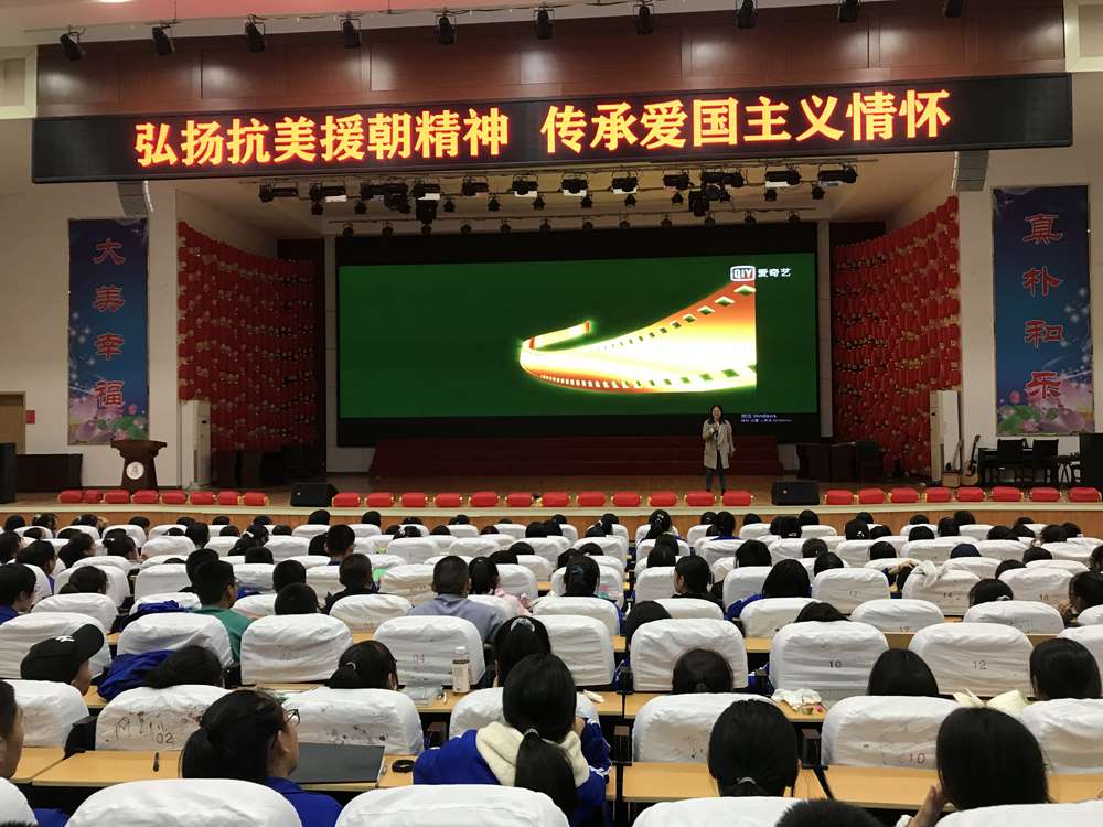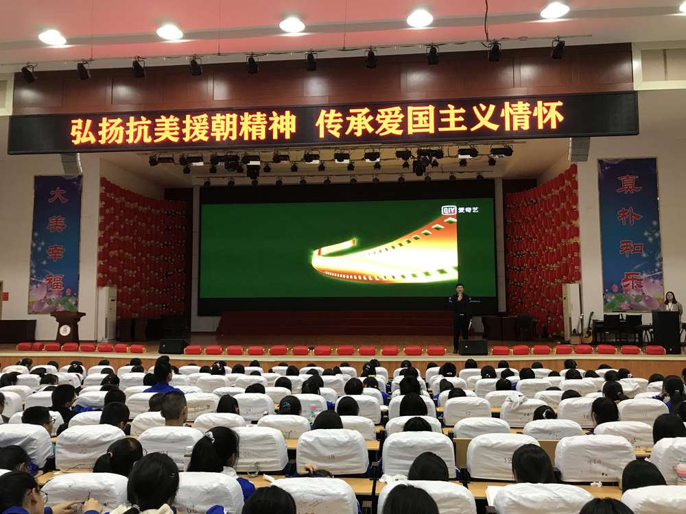 在观看电影前,高一历史教师王潇对抗美援朝伟大战争胜利的历史意义向学生们做了讲解。这场伟大战争的胜利,不仅达到了“抗美援朝、保家卫国”的目的,维护了亚洲及世界的和平,还极大地提高了中华人民共和国的国际威望,极大地鼓舞了国内人民,为中国经济建设取得了长期安全和平的环境。