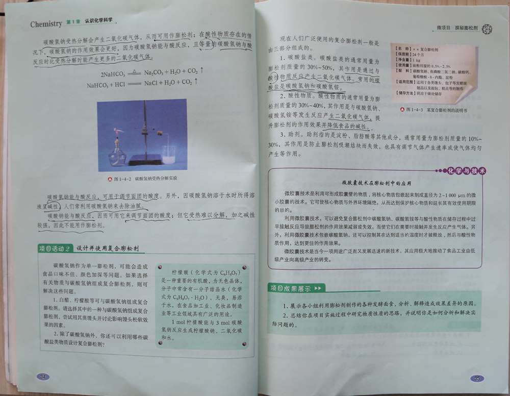 据该学科组王海玲等老师介绍,目前他们化学科的教学进度正在研讨学习完化学必修一的微项目——探秘膨松剂,10月17日,适逢学生离校返家的日子,老师们决定让学生趁周末回家真正动手探秘一回。为了让学生将该项实践活动落到实处,老师们设计了“化学与生活实践活动表”,内容包括制作原料、膨松剂种类及成分、制作过程(包括加入膨松剂的时间,膨松剂状态等)、膨松剂工作原理、自己的感受以及作品照片等,帮助学生更好的完成实践活动。