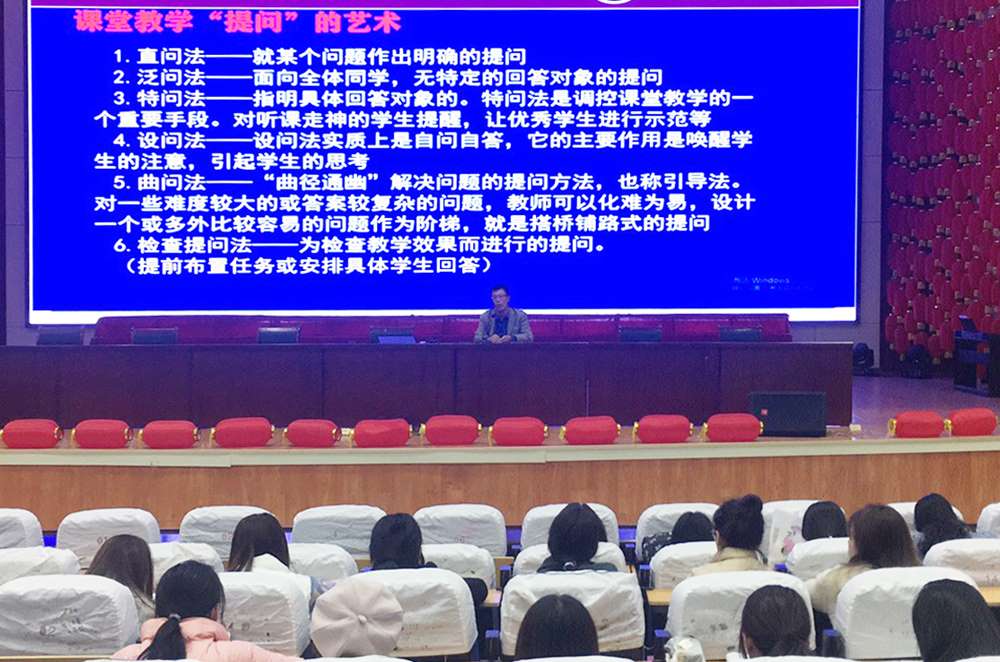 张俊华老师从如何备好一堂课、如何讲好一堂课两个方面向青年教师们传授了自己的教学经验,让老师们受益匪浅。之后韩主任对张老师的讲话做了总结,一并向青年教师们讲解了课堂教学“提问”的艺术,让青年教师学会提问,让学生在老师们的提问中成长。