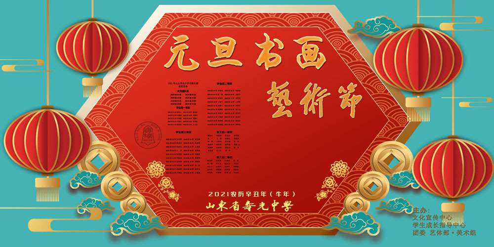 为营造校园艺术氛围,放飞梦想,彰显青春活力,创建大美幸福校园,2021年元旦期间,寿光中学举行了元旦书画展。此次书画展得到了全校师生的积极响应,各位老师、各班级踊跃投递书画作品,共展出优秀书画作品86幅,包括国画(工笔、写意、白描)、书法(篆书、隶书、楷书、行书、行草)、油画、卡通动漫、素描、水粉画、速写、硬笔书法、剪纸等。