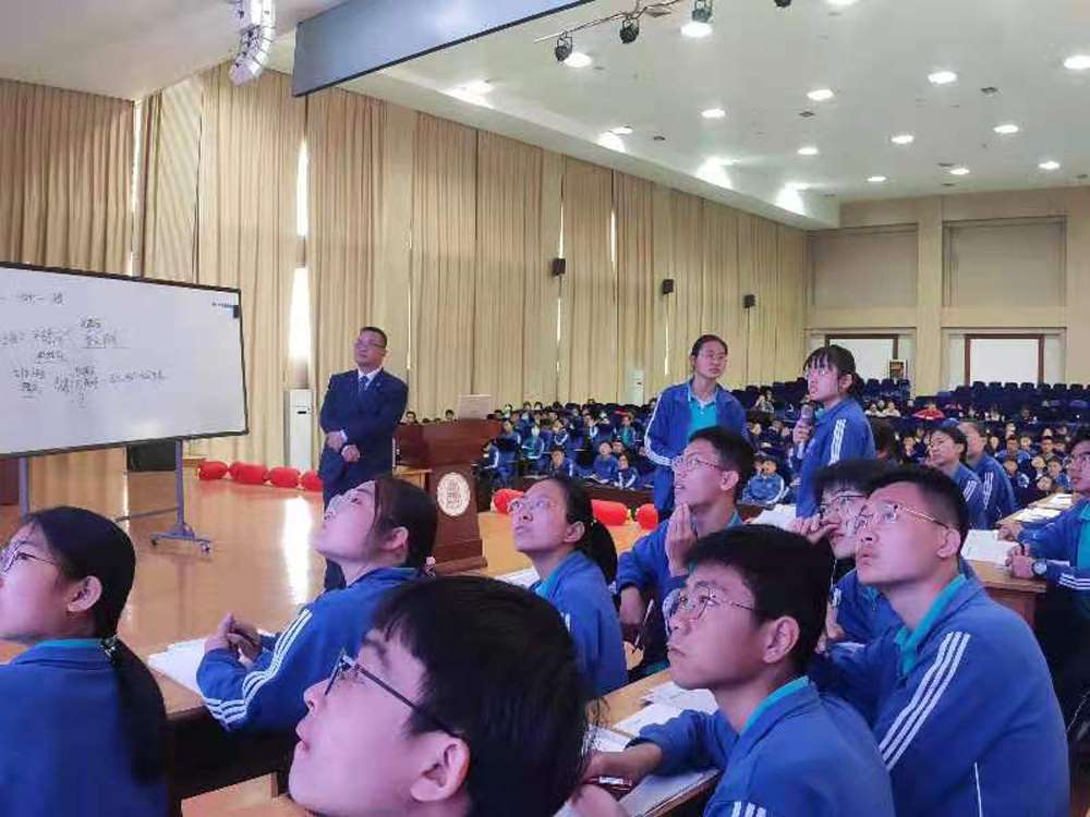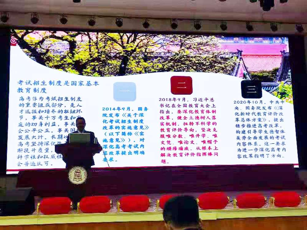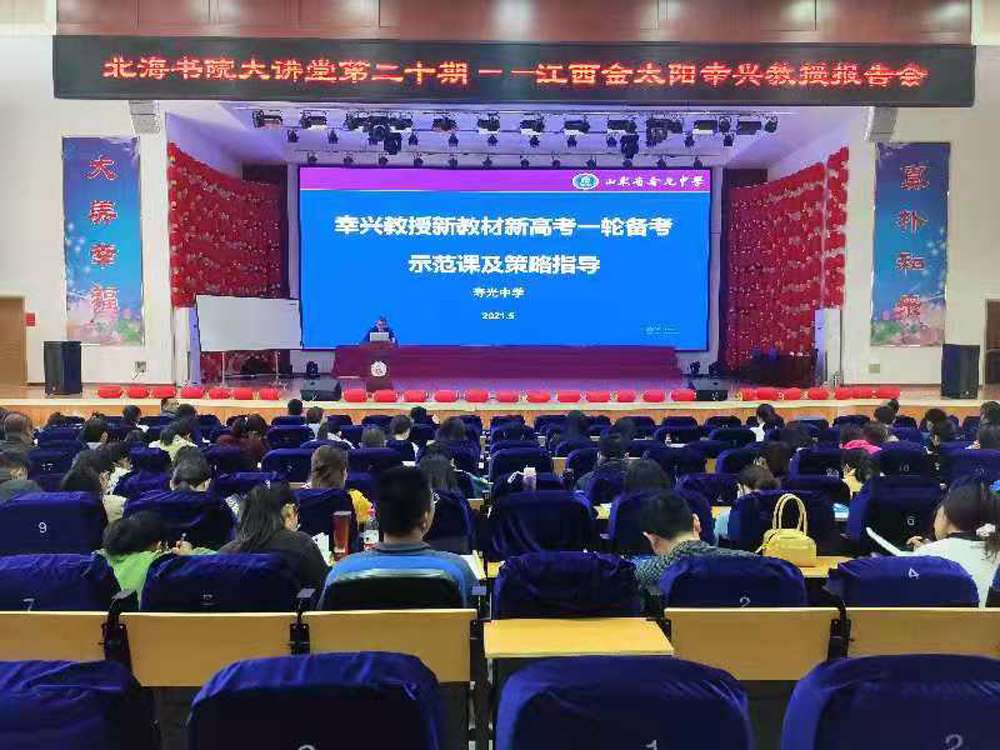 为了提升2019级一轮复习效能,科学谋划备考安排,大力优化复习策略,积极探索“新教材新高考”背景下的高效备考路径,5月7日,寿光中学在北院报告厅举行“落实三位三对,强化遵道优术”专题报告会。这是北海书院大讲堂第20期活动,来自全国知名教育集团金太阳教育的幸兴教授就“2022届新高考一轮备考策略”作了报告分享。校长、党委书记黄本东和副校长李福学带领高二全体教师、全校语文教师和高二部分学生参加了会议。