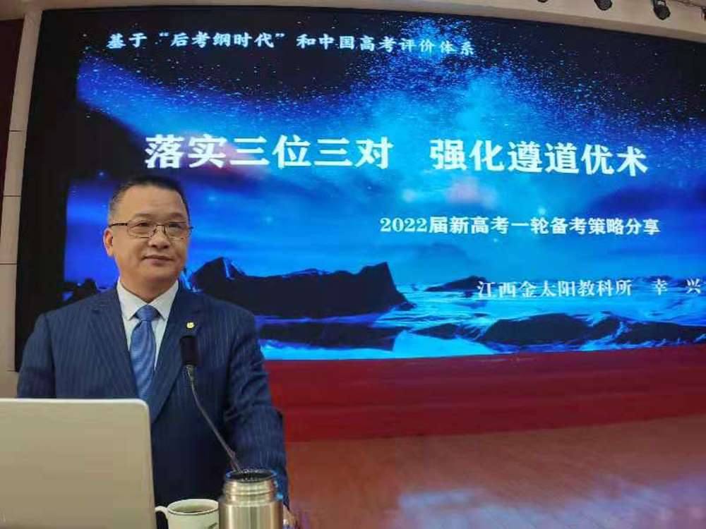 在2019级即将展开一轮复习的起点,在2018级冲刺最后30天的关键节点,我们迎来了幸兴教授的高屋建瓴的指导,恰如及时雨、雪中炭。幸教授的示范课紧扣新教材的命脉,贴合新高考的动向,充分体现了学生的主体地位,学生积极主动性得以充分释放,值得每位教师用心揣摩学习。幸教授的备考策略指导,站位高端,内容详实。报告中有政策动向,有内幕消息,有真题解析,有创新预测,有理论指导,有具体措施,真是干货满满,为我们的复习指明了方向,给出了方法。