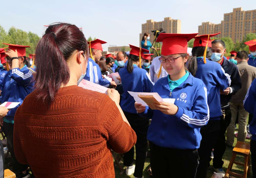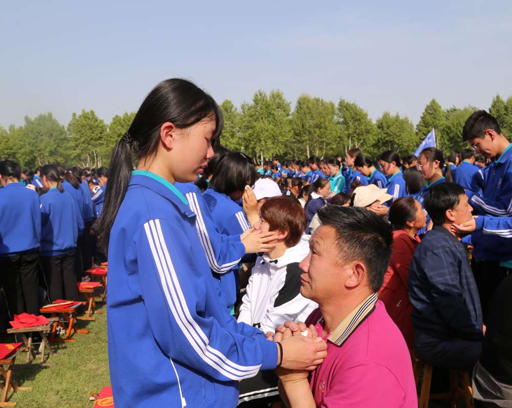 在成人典礼前,全体学生还在所在班任课老师的带领下进行了为期一天半的“跳龙门”体验式拓展训练。在拓展训练教官的引导下,同学们拥抱父母,并大声喊出“爸爸、妈妈我爱你”,感恩父母养育。亲历孩子立身成人的父母们,不禁热泪盈眶,望着眼前操劳父母的同学们,鼻头酸涩。一顶顶火红的冠笄炽热耀目,一句句“爸爸、妈妈,您辛苦了!”是学子们发自内心的情感告白,久久的拥抱是学子们最感动的喜悦。学生及家长互相交换彼此早已写好的信件。此时内心最柔软的角落被触动,不少同学默默的流下眼泪,简单的一封信让父母和子女彼此更加了解对方。