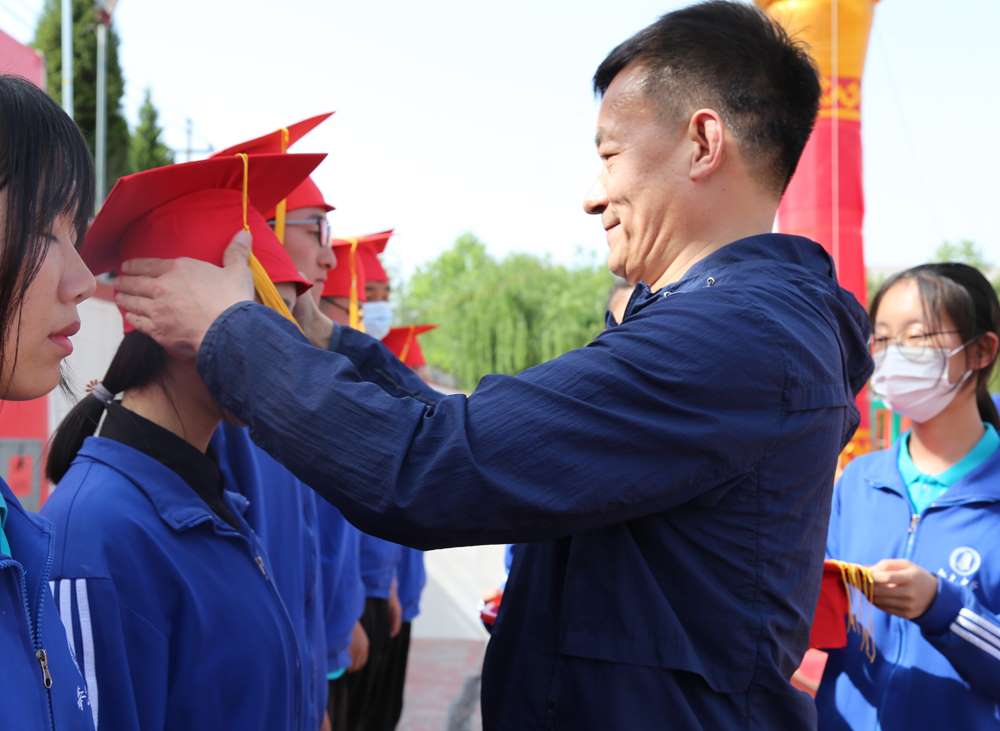 “冠者,礼之始也。”冠礼是中华民族的传统礼仪,标志着稚弱的青少年正式成为有责任有担当的青年。校长、党委书记黄本东为各班学生代表亲授成人帽。随后家长们为自己的孩子加冠,寄予期望,赋予力量。礼毕后,家长与学生手牵手走上走过成人门,踏上成功路,黄校长带领全体教师在成人门一侧与每一位同学扺掌祝贺,学生们的心灵受到了洗礼与震撼。