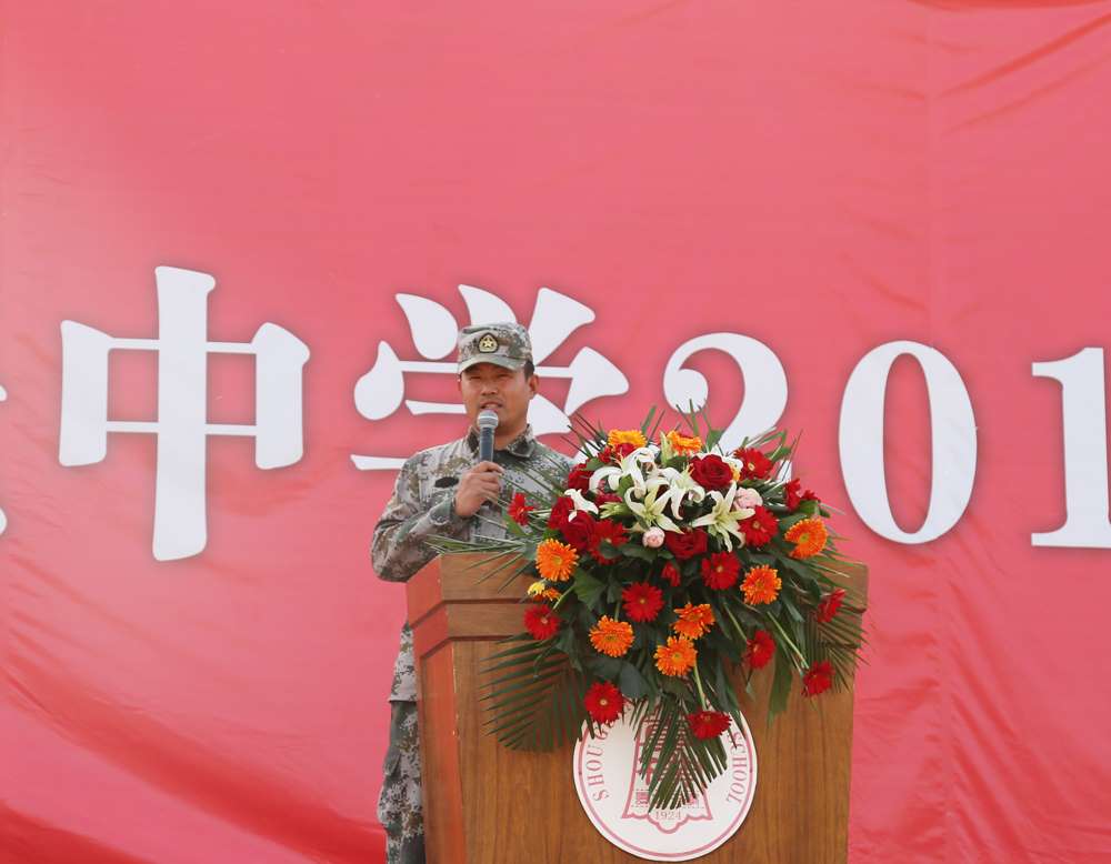 最后,在2019级年级主任李怀春的带领下,同学们共同举起握紧的右拳对着鲜艳的国旗庄严宣誓,铮铮誓言表达了学生们的决心和信心。