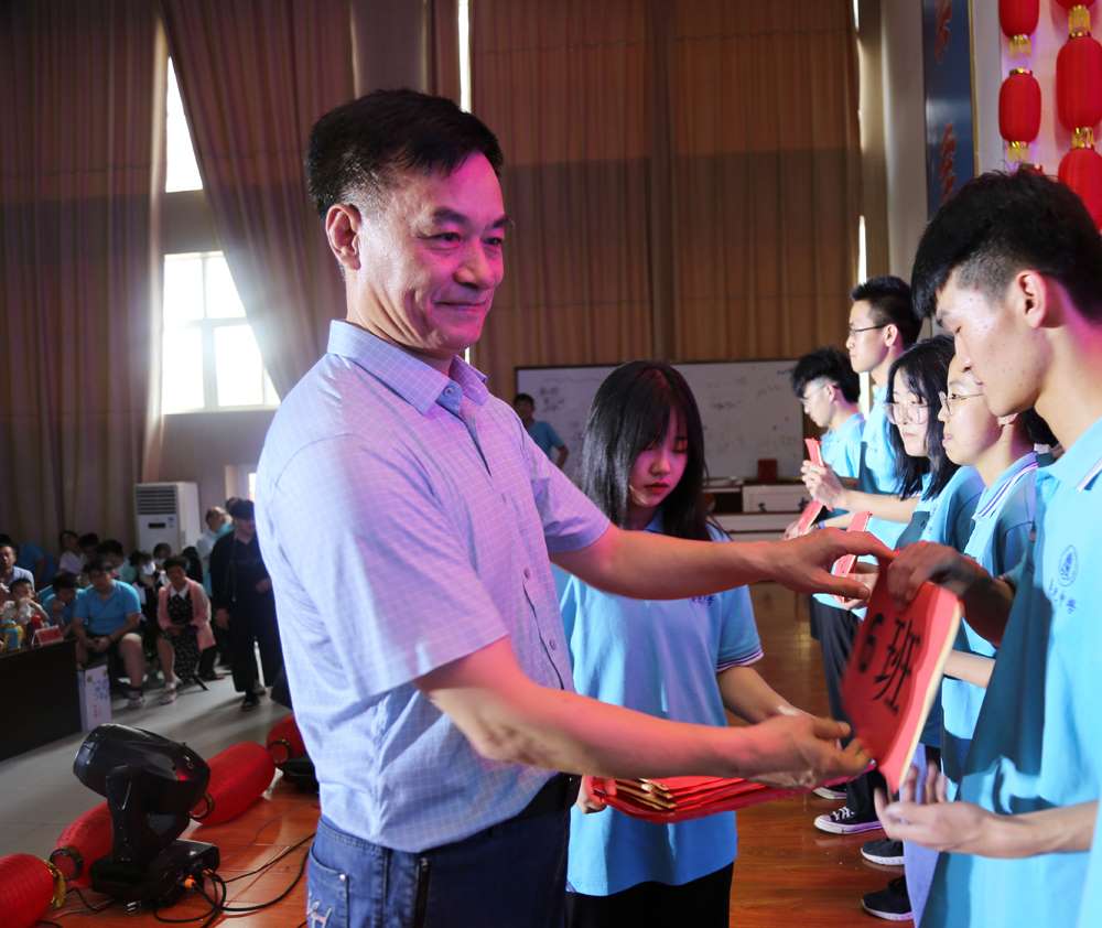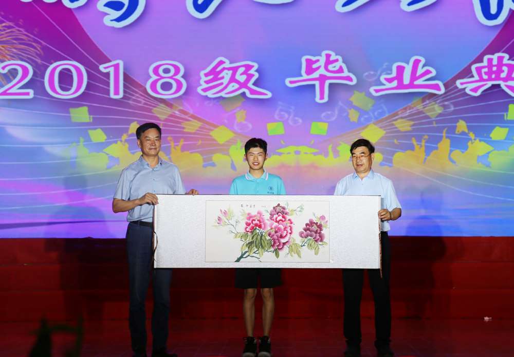 学生代表从黄校长手中接过毕业证书,并再一次聆听校长的嘱托。鹏起北海之际,为了使同学的羽翼更加丰满,黄校长送给同学们四句话,十二个字:做好人,做好事,成好才,常相聚。最后,黄校长和同学们相约20年后再聚首,那时听听同学们的故事。