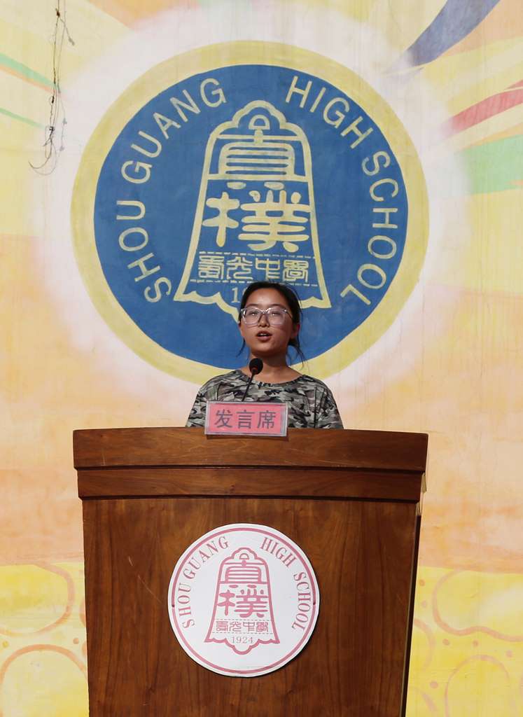 高一新生代表邱美颖首先代表全体高一新生向各位领导、老师和学长表示崇高的敬意并表示会以学长为榜样,努力向老师和学长学习,努力通过学习做拥有智慧并富有激情的人;做胸怀大志并脚踏实地的人,做富有责任并敢挑重担的人,以诚以坚,惟志惟勤,志存高远,自强不息,用最优秀的成绩回报父母、老师、母校的付出与期望,用最勤奋的努力响应社会、民族、国家的信任与愿望。在人生的转折点上,谱写出一曲华彩乐章!