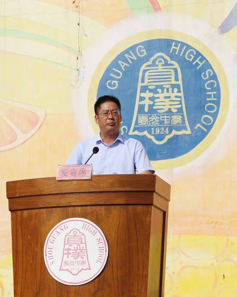 典礼上,校长、党委书记杨守苗做了题为《相守弥苑,逐梦启航》的精彩讲话。他首先对新入职的年轻教师和新入校的新同学表示欢迎,并祝寿光中学的老师们第37个教师节快乐。杨校长向师生们介绍了学校的历史文化和办学理念,总结了学校过去一年在高考及教育教学方面取得的骄人成绩,并向全体师生提出了四点希望:第一,立说立行进状态,迈好开端第一步;第二,立足长远定目标,做个有追求的人;第三,将自我融于社会,做个懂感恩的人;第四,学会理解与赏识,做个会合作的人。同时,杨校长还对同学们进行叮嘱:希望高三的战士们,努力拼搏超越,全力冲刺明年高考;希望高二的朋友们,夯筑坚实基础,抓牢高二关键时期。希望高一的新弟子们,实现全面转变,扎实打好高一基础。最后,杨校长说,让我们相守弥苑,逐梦启航,勇济万里沧海,力铸不朽人生!