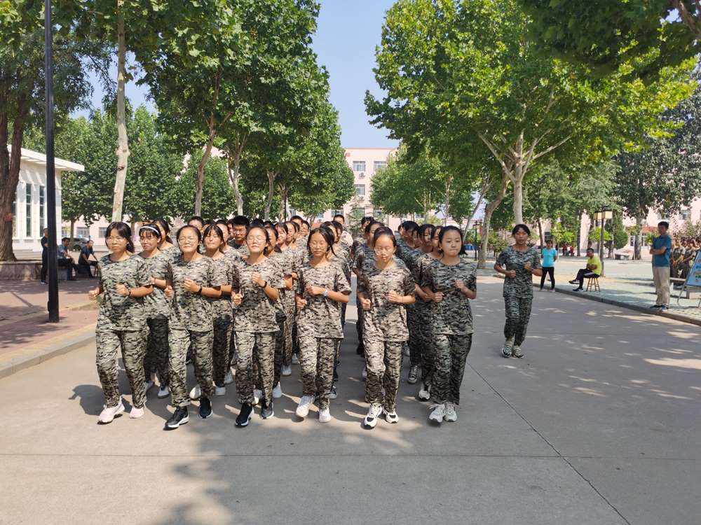 军训是同学们成长过程中一笔宝贵的财富,通过军训他们对自己提出了新要求,确立了新目标。军训中他们步伐整齐,不惧艰辛,满怀激情;成果展示中,他们口号嘹亮,雄姿英发,热血激昂。在体委的指挥下,各班进行了基本的队列动作及步伐队形变化。整齐划一的动作、矫健有力的步伐、英姿飒爽的风姿,赢得了阵阵掌声,最终评选出7个优胜班级和一个优胜级部。