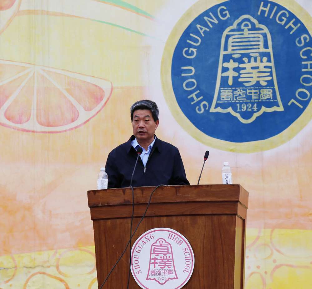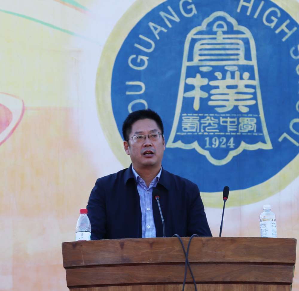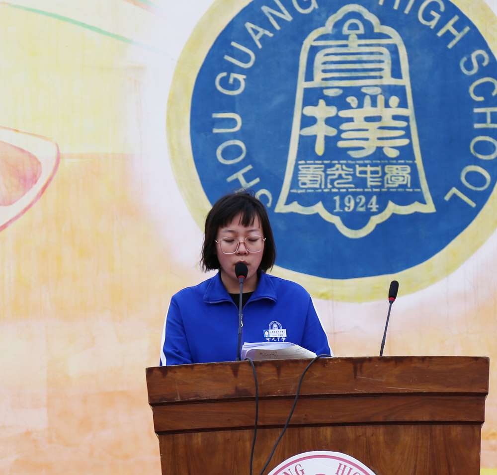 副校长韩思端致开幕词,他鼓励全体师生奔赴赛场,去参与、去奋斗,去享受运动的乐趣,去书写激扬的青春。他希望全体同学秉承“真朴和乐”的精神,大力弘扬奥林匹克精神,开创人生美好未来。