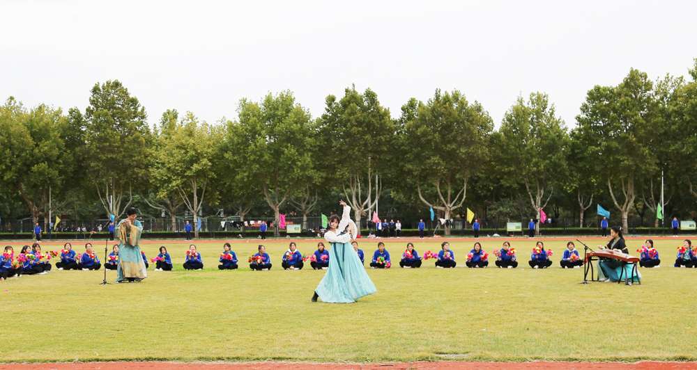 别开生面的开幕式表演中,同学们用舞蹈、歌曲、特色表演等张扬着青春活力的优质节目向全校师生献礼,各展魅力与风采。其中汉服表演,我校学子将古典传统文化与现代舞台元素相融合,穿越历史时空,将汉唐服饰、礼仪、乐曲的古韵之美搬上舞台,节目形式别具一格,内容让人耳目一新。舞蹈表演将现场气氛推向高潮,来自校艺术班的同学们,用他们英挺的身姿、高超的舞技,表演出专业级舞蹈演员的水准,台下的同学们跟着动感节拍,挥舞手臂、摇动小旗,不断对他们的舞姿发出赞叹,大呼过瘾。
