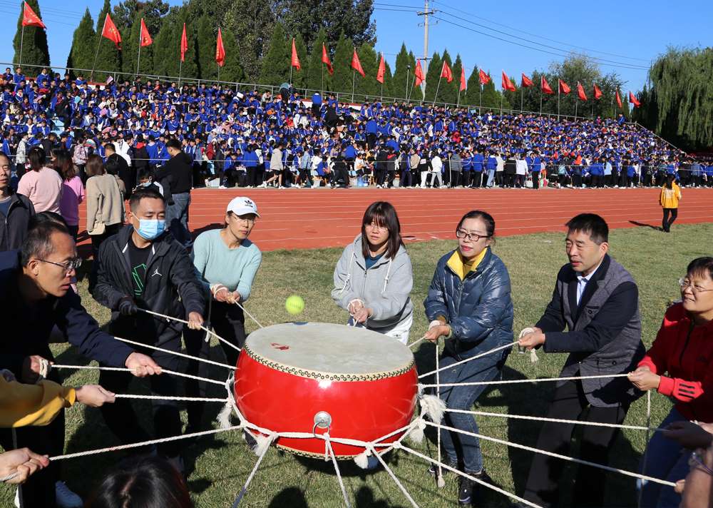 运动场上不仅有学生们生龙活虎的英姿,也有老师们争先恐后的运动身影。学校工会专门为老师们安排了趣味运动项目,有同心击鼓,跳绳、蚂蚁搬家、毛毛虫等项目,老师们踊跃参加,快乐运动。趣味的运动项目,愉悦了身心,凝聚了力量。