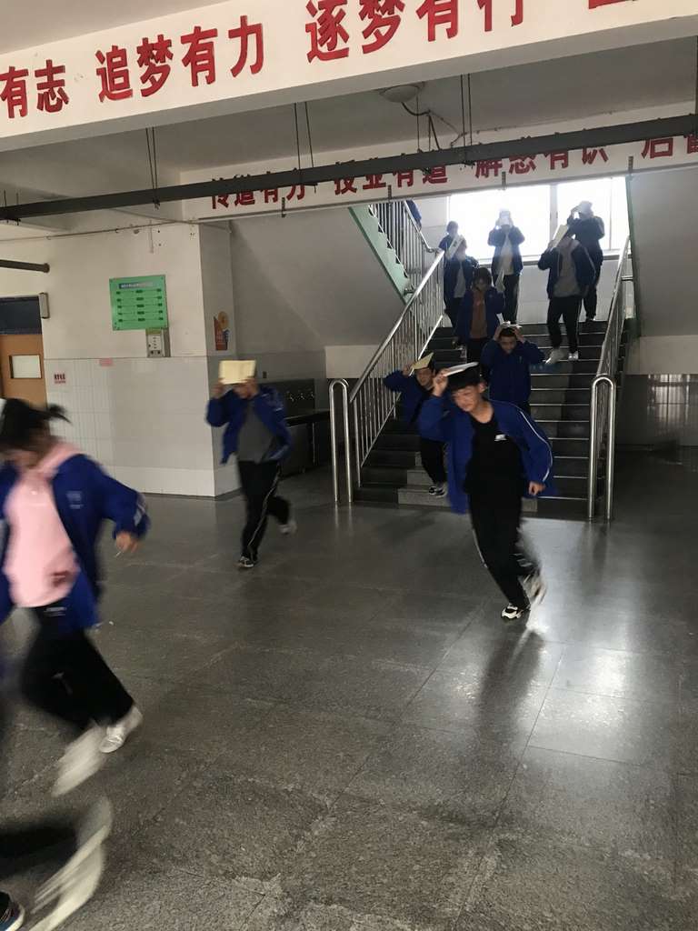 地震逃生演练前,级部按照学校制定的疏散预案,在教学楼各楼层口均安排疏散安全员,对各班的疏散路线、疏散路队都做了周密的布置。随着一阵急促的警报声响起,演练开始。同学们在各班主任的指挥下迅速在教室课桌下躲避危险。警报声的再次响起后,同学们弯腰抱头,贴着墙角,沿着熟悉的路线,紧张、快速、有序地撤离到安全区域,仅用时1分25秒,演练取得圆满成功。