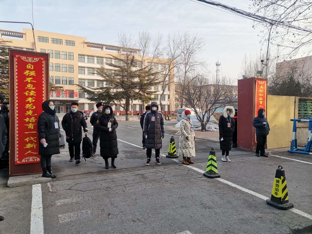 这一天早上,春寒料峭,学校领导及部分教师志愿者在校门口早早就位,迎接学子的到来。严格按照入学流程,为每一名学生测温、消毒。