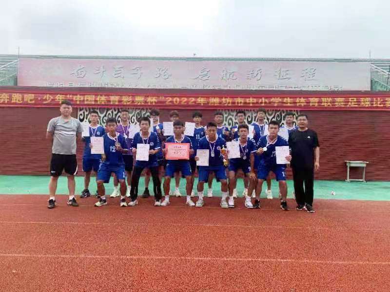 为了备战此次的足球比赛,学校积极组织人员进行选拔和训练。在学校领导的大力支持下,全体体育教师积极配合共同努力,领队赫庆军老师和主教练王玺印老师带领全体队员积极备战,力求以最佳的状态和水平迎接本次比赛。功夫不负有心人,广大队员不负众望,在比赛中一路过关斩将,在小组赛中战胜了安丘二中、临朐中学,以小组第一名进入下一阶段比赛。在第二阶段比赛中战胜昌邑一中,决赛对阵老牌劲旅潍坊一中,最终获得亚军的优异成绩。