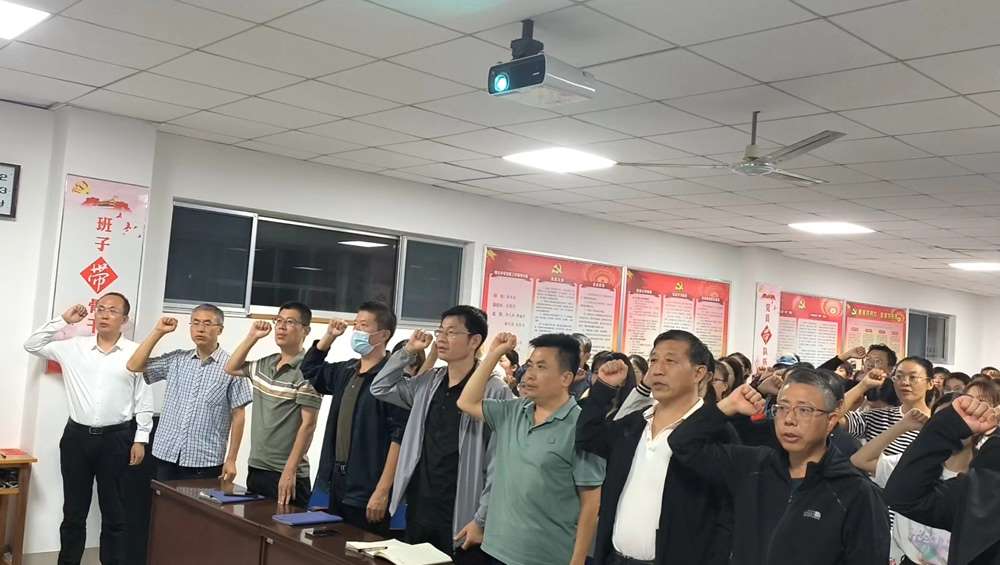 最后,与会全体教师在领誓人梁霄老师的带领下进行了宣誓活动。通过宣誓活动,加深了大家对教师神圣职责的认识与理解,坚定了教师的职业信念和职业操守,明确了薪火相传、青蓝永续的深刻内涵。