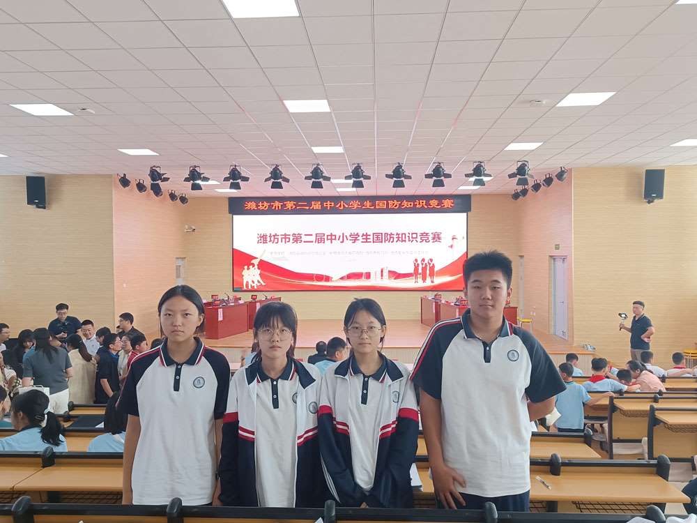 9月7日,潍坊市第二届中小学国防知识竞赛总决赛在潍坊高新区东方学校举办。比赛开始后,寿光中学学子张明睿、丁一峰、李卓然、肖荣桢四名参赛选手积极思考、互相配合,面对复杂的竞赛题目,他们镇定自若、信手拈来,最终获得了高中组团体二等奖的好成绩。