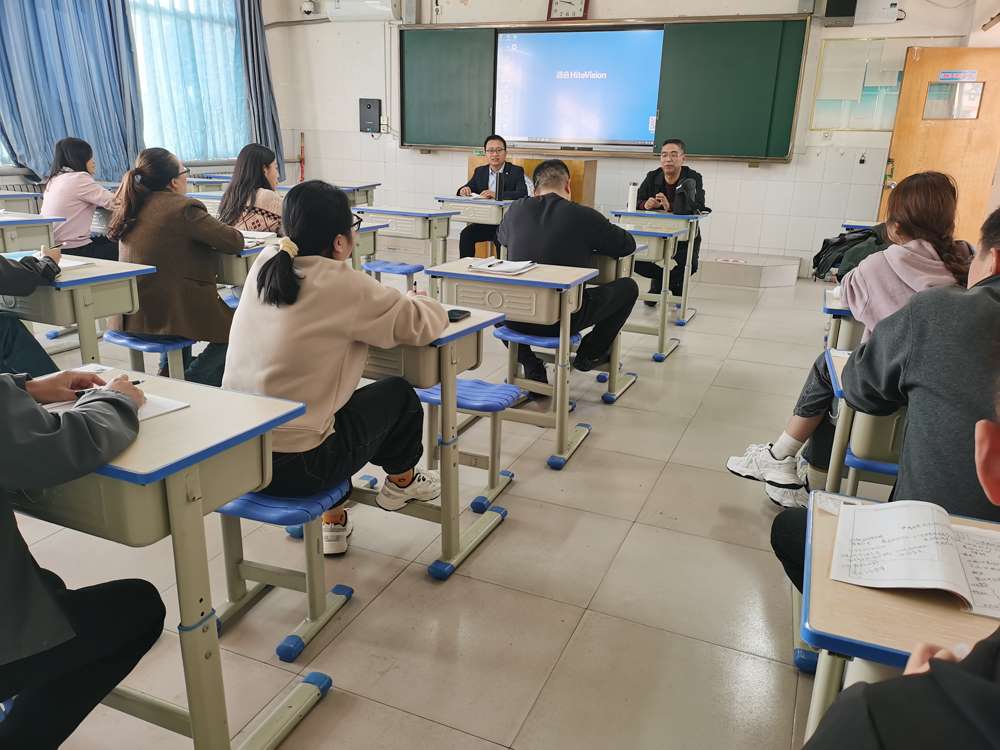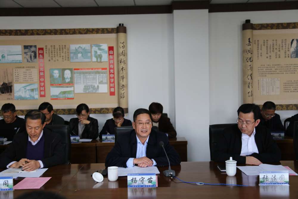 为进一步聚焦教学常规和课堂改进提升工作,促进普通高中教育教学高品质发展,10月25日下午,潍坊市教育科学研究院党总支委员姜正伟带领各学科教研员,到我校进行了调研。学校党委书记杨守苗、校长孙曰亮等领导班子成员以及各学科教研组长共同参加了会议。