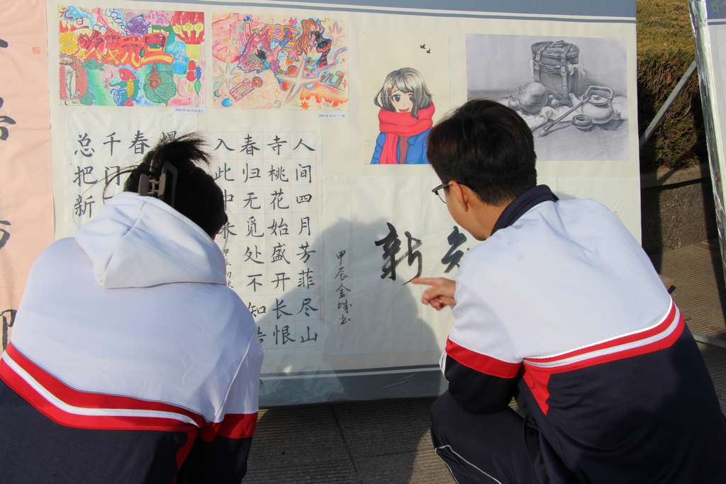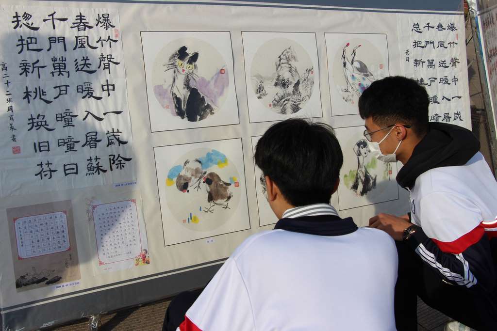 2025年元旦期间,寿光中学的校园内洋溢着浓厚的艺术气息。寿光中学文化宣传中心、学生成长指导中心、团委、艺体部联合举办的跨年书画展在校园广场成功举行。同学们用画笔描绘生活美好,用笔墨书写爱国情怀,充分表达了对祖国、校园、生活、艺术的无限热爱和赞美之情。