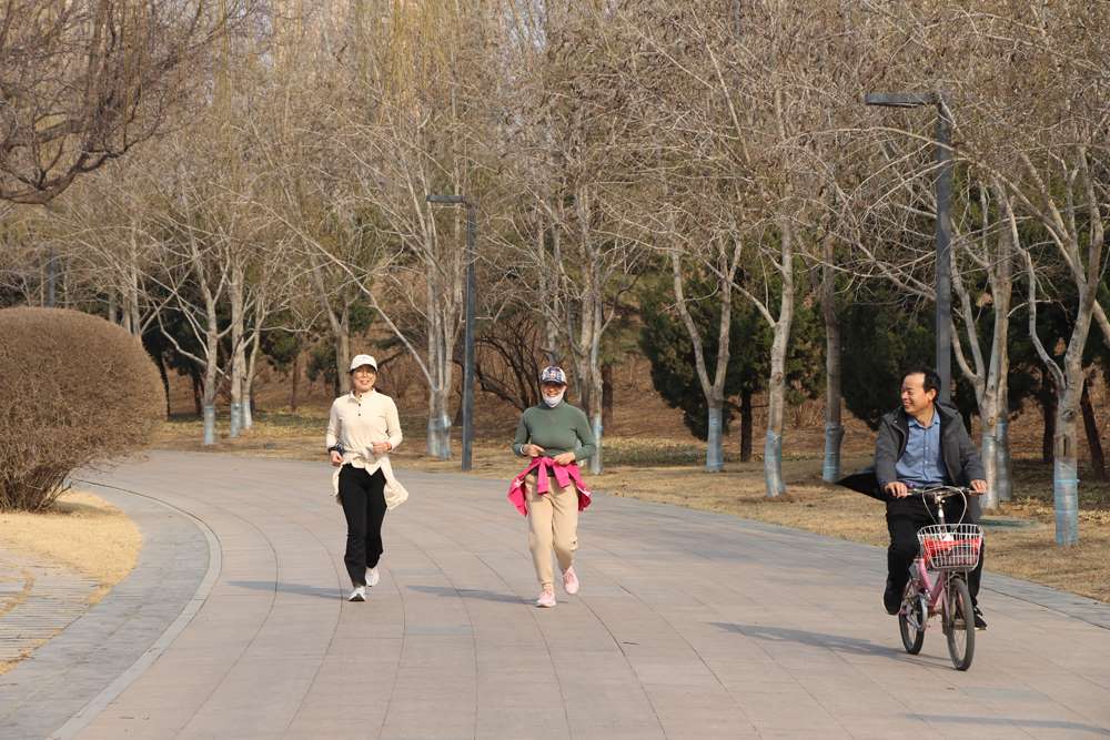 开幕仪式后,艺体部主任赫庆军老师带领大家做了热身活动。随后,弥苑女神们迈着矫健的步伐向弥河进发了。是日阳光明媚,天朗气清,弥河岸边春意萌动,草色泛绿,鸥鸟翔集,河水清澈。女神们欣赏着沿河美丽的自然风光,呼吸着清新的空气,精神抖擞,意气风发,步履轻松,载笑载言,精神自由,心情愉悦,展现出新时代女性的靓丽风采。