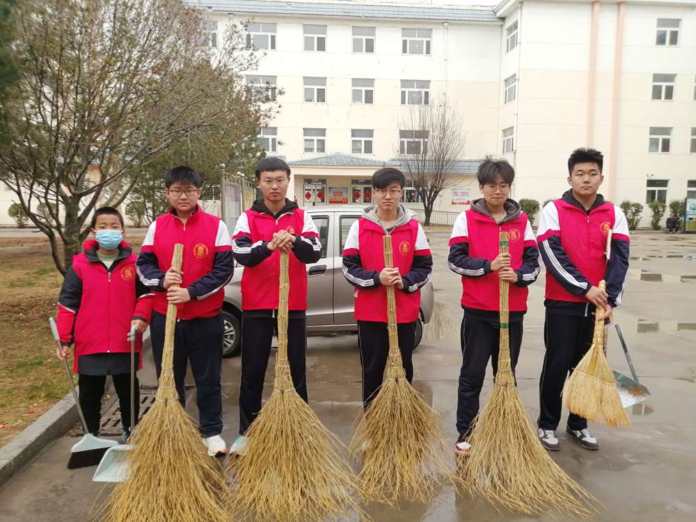 3月3日,雪天刚过,雪花铺满了街道,25名师生志愿者利用课余时间,手持扫帚、铲子、垃圾袋等工具,进行志愿清扫工作。