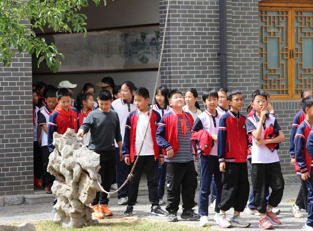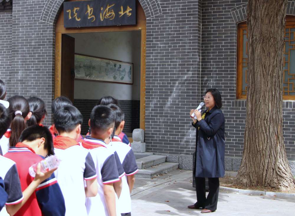 学生们首先来到了北海书院门前。牟维宁老师为孩子们生动地讲述了学校的标志性文化建筑启秘台的传说和北海书院的历史,风揺银杏叶,仿佛在诉说着岁月的沉淀,古老的仓颉像传递出深厚的文化底蕴。孩子们仰着稚嫩的小脸,认真聆听,眼中满是对知识与历史的好奇。