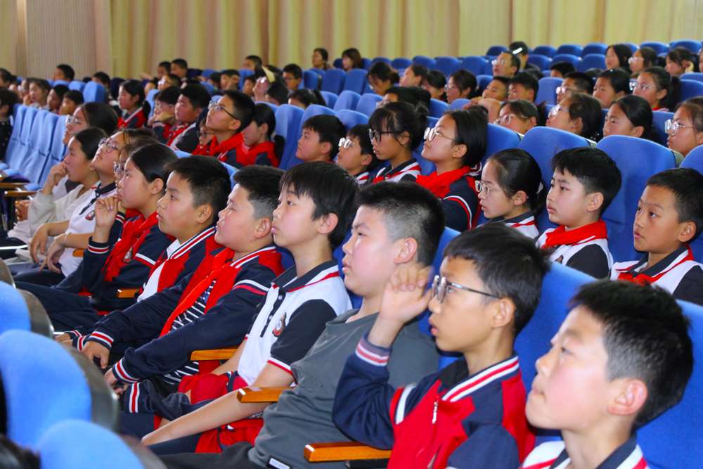 参观完北海书院,孩子们来到报告厅。苏明山主任以“穿越到未来”为主题,给大家带来了一场别开生面的讲话。苏主任用风趣幽默的语言瞬间拉近了与孩子们的距离,他用生动的图片为孩子们讲解了高中生的一天。苏主任说道:“昨晚我做了一个奇妙的梦,梦到张载托我给大家说一句话——为天地立心,为生民立命,为往圣继绝学,为万世开太平。”这句话不仅蕴含着深厚的家国情怀,更在孩子们心中种下了一颗立志为国家、为社会贡献力量的种子。