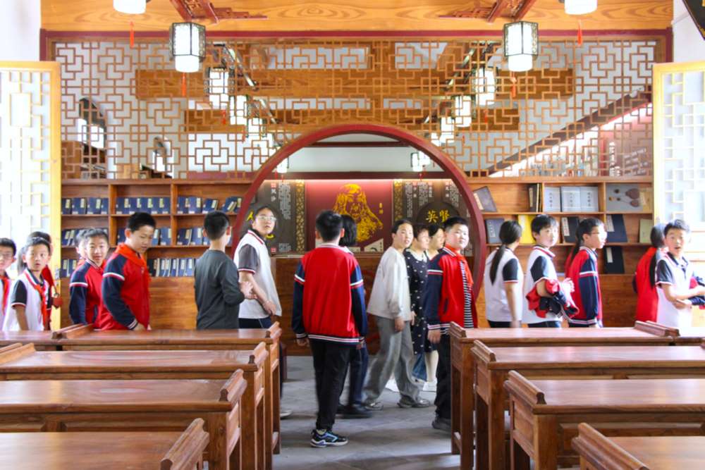 随后,大家一同走进北海书院。这座充满文化气息的建筑,一砖一瓦都散发着独特的魅力。孩子们漫步和亭,好奇地仰望建筑内的壁画。当他们来到锁皮厅内的文化大讲堂时,更是被眼前的景象所吸引——古代学堂式的布置,仿佛打开了一扇穿梭古今知识殿堂的大门,让孩子们对传统文化充满了无限向往。