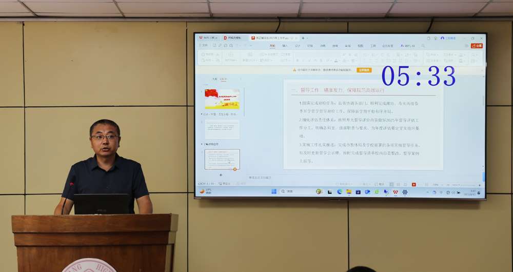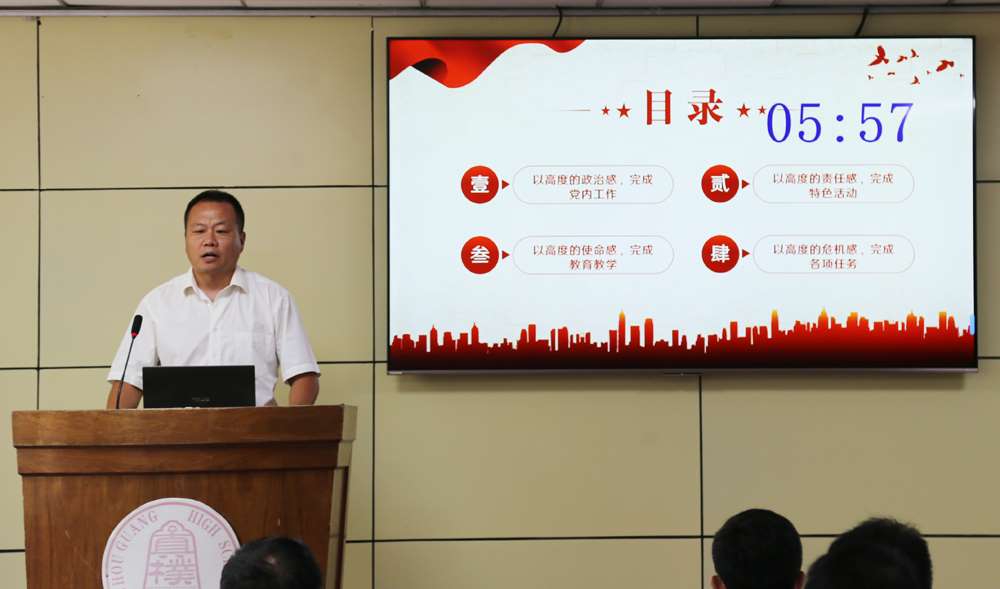 寿光中学全体中层干部围绕教学管理、后勤服务、学生发展等方面,以“答卷人”的姿态梳理了自己一年来的工作。教学干部分享了课堂改革成果,从教学到管理,用学生成绩提升、课堂活力增强的数据说话;后勤干部聚焦校园安全、服务保障等方面,汇报了设施升级、制度优化等举措,以师生满意度印证成效。同时,大家不回避问题,坦诚剖析工作短板,展现了直面不足的勇气。最后,每位干部就自己所分管的工作提出了后段的工作思路。