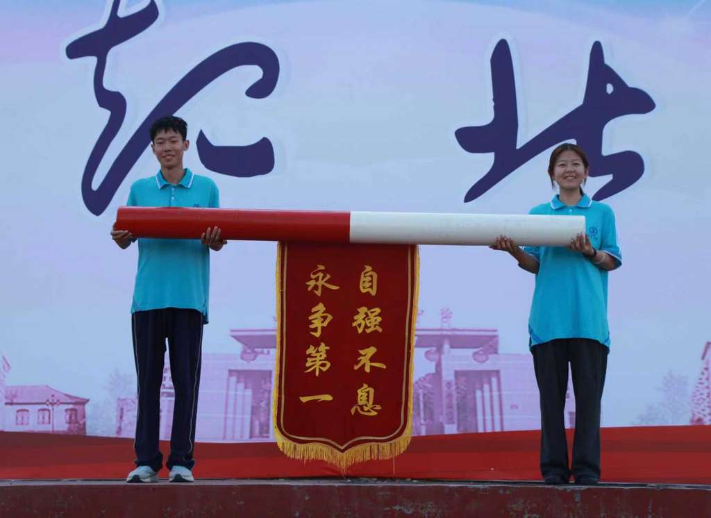 最后,原高三学生代表马硕遥、葛秋阳将高考接力棒郑重交予新高三学生代表郭雨嘉、吴孟洋,这一递一接间,传递的不仅是高考的责任,更是寿光中学学子代代相传的奋斗精神与追梦信念。
