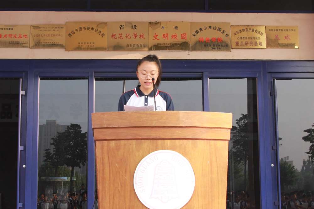 首先,朱海建主任宣读优秀学生名单,学校党委委员、副校长韩守德为优秀学生代表颁奖。优秀学生代表10班李祥瑞同学分享了她进入高三后的学习心得、备考策略以及心态调整的秘诀。李祥瑞向全体高三同学的复习备考提出三点建议:第一夯实基础拒绝眼高手低,第二重视错题建立成长档案,第三调整心态保持张弛有度。