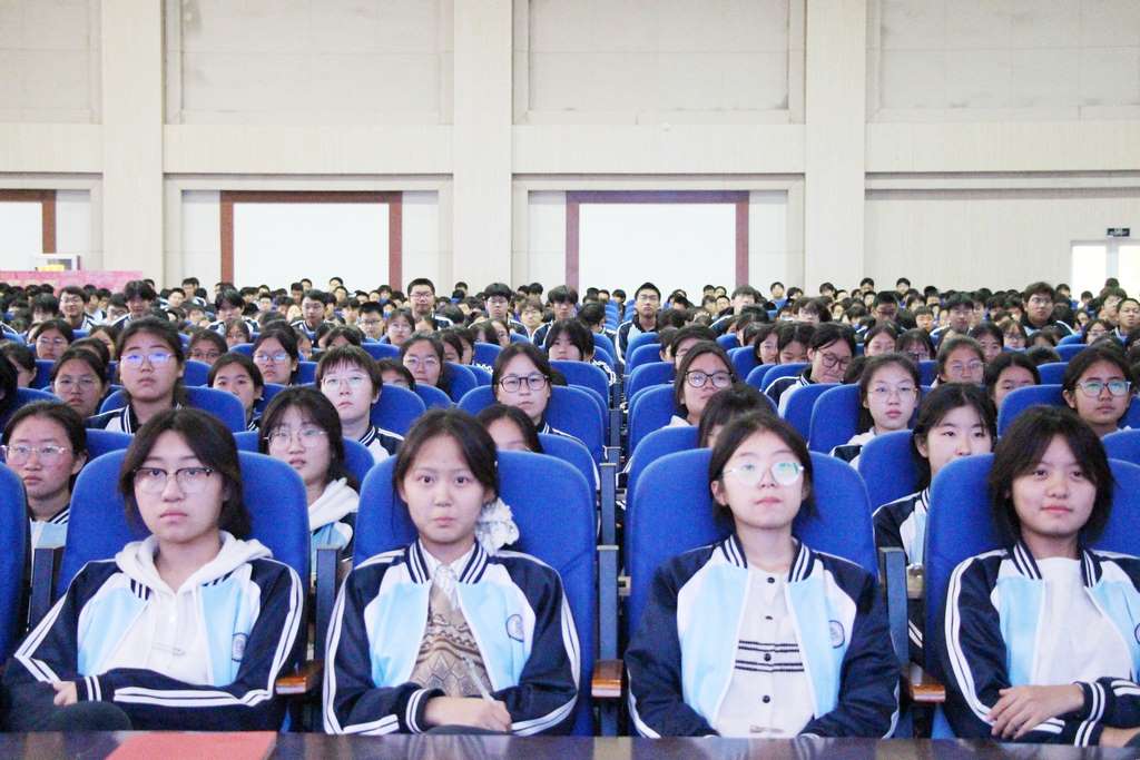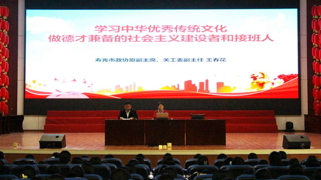 为大力弘扬中华优秀传统文化,厚植学生文化自信,筑牢师生文化素养根基, 10月30日下午,寿光中学邀请寿光市政协原副主席、市关工委副主任王春花同志到学校报告厅作传统文化专题讲座,2025级1000多名师生聆听报告会,学校党委委员、副校长徐涛主持会议。