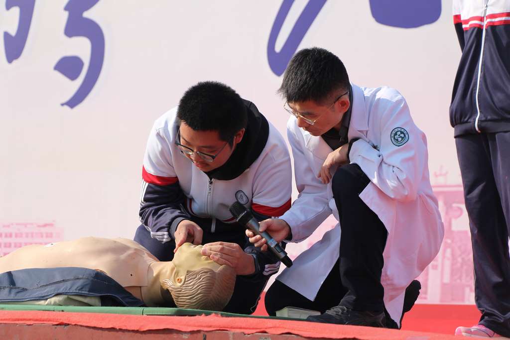 为强化师生疾病防控意识,提升突发疾病应急处置能力,11月5日上午,寿光中学特邀寿光市人民医院急诊科医生团队,在学校操场为高二、高三全体学生及全校教师开展急救知识专题培训。
