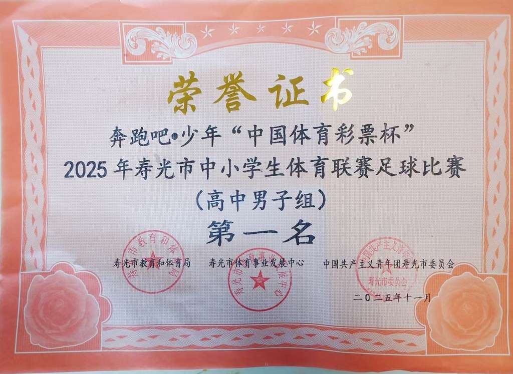 优异成绩的背后,离不开学校领导长期以来对体育教学的高度重视与支持,也凝聚着体育组教师们的专业指导与付出,更是全体队员日复一日刻苦训练的回报。期待寿光中学足球队继续保持昂扬斗志,在未来的赛场上再创佳绩,为校争光!